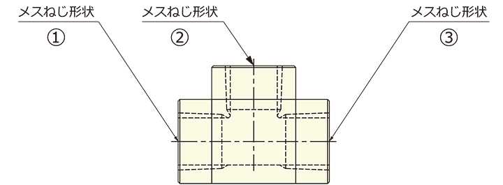 | 型式 | メスねじ口径① | オスねじ口径② | オスねじ口径③ |